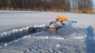 Malotraktor se na rybníku propadl ledem cca 30 metrů od břehu