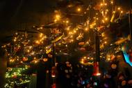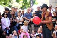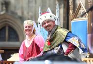 Obří loutky pod katedrálou, belgická kapela. Plzeň oslavila deset let od zisku kulturního titulu